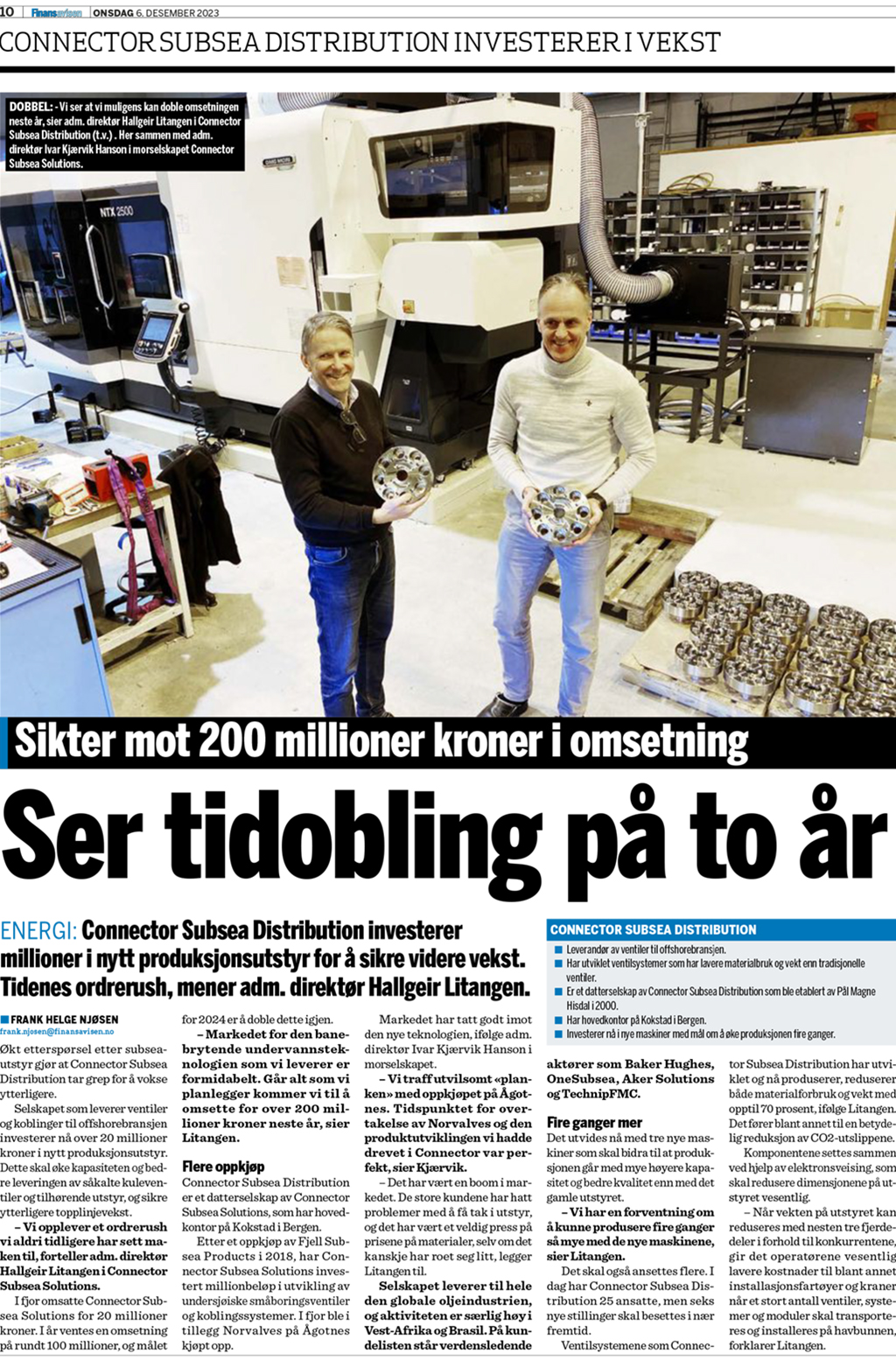 Last year, Connector Subsea Solutions had a turnover of NOK 20 million. This year, a turnover of around 100 million is expected, and the goal for 2024 is to double this again.