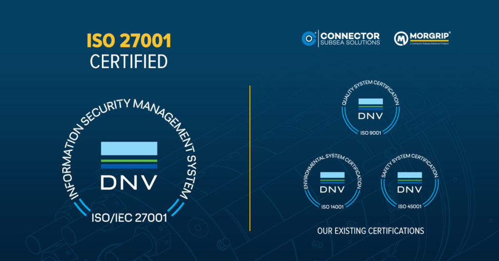 At Connector Subsea Solutions (CSS), delivering cost-effective, field-proven, and robust subsea pipeline repair and maintenance solutions has always been central to our mission. Today, we are proud to announce another major milestone in our ongoing journey towards operational excellence: CSS is now ISO 27001 certified.
