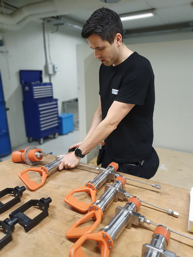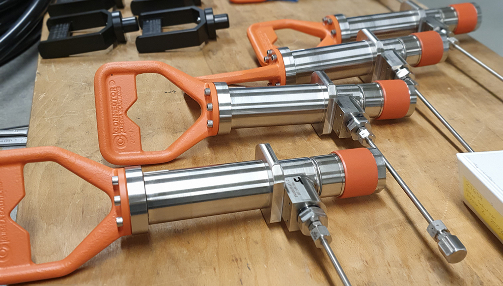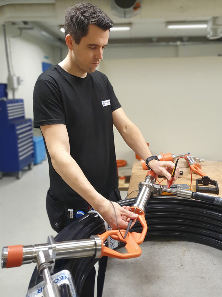 The MD Connectors, pictured here undergoing FAT by our workshop technician Rune Nilsen, are to be deployed in the North Sea.