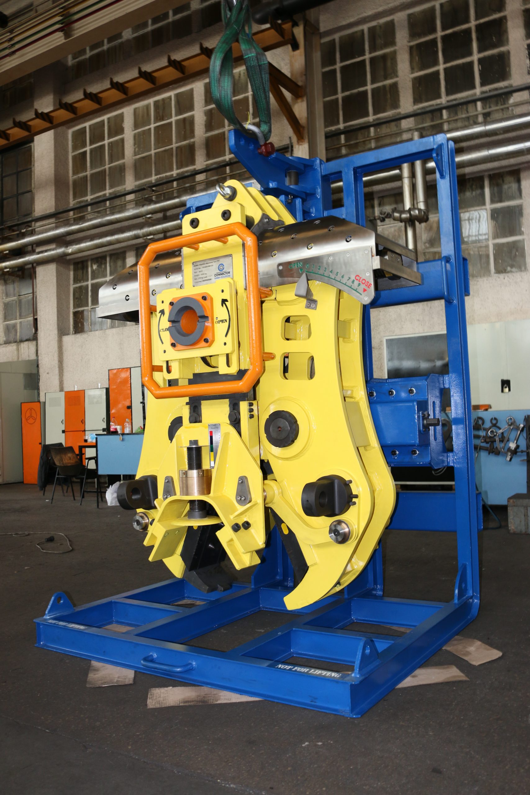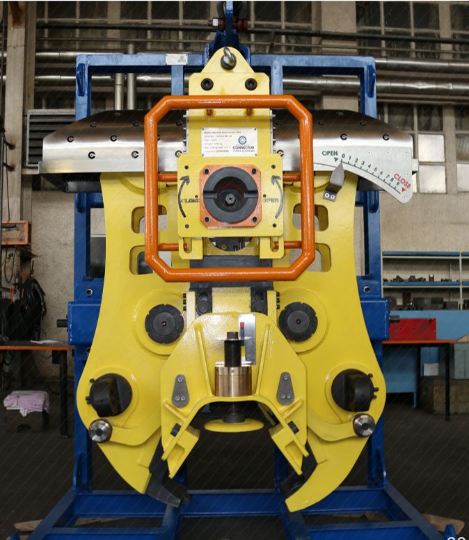 The lifting points are adjacent to the centre of the jaws and are hinged. This feature ensures a controlled lift by mitigating the bending moment in the load.